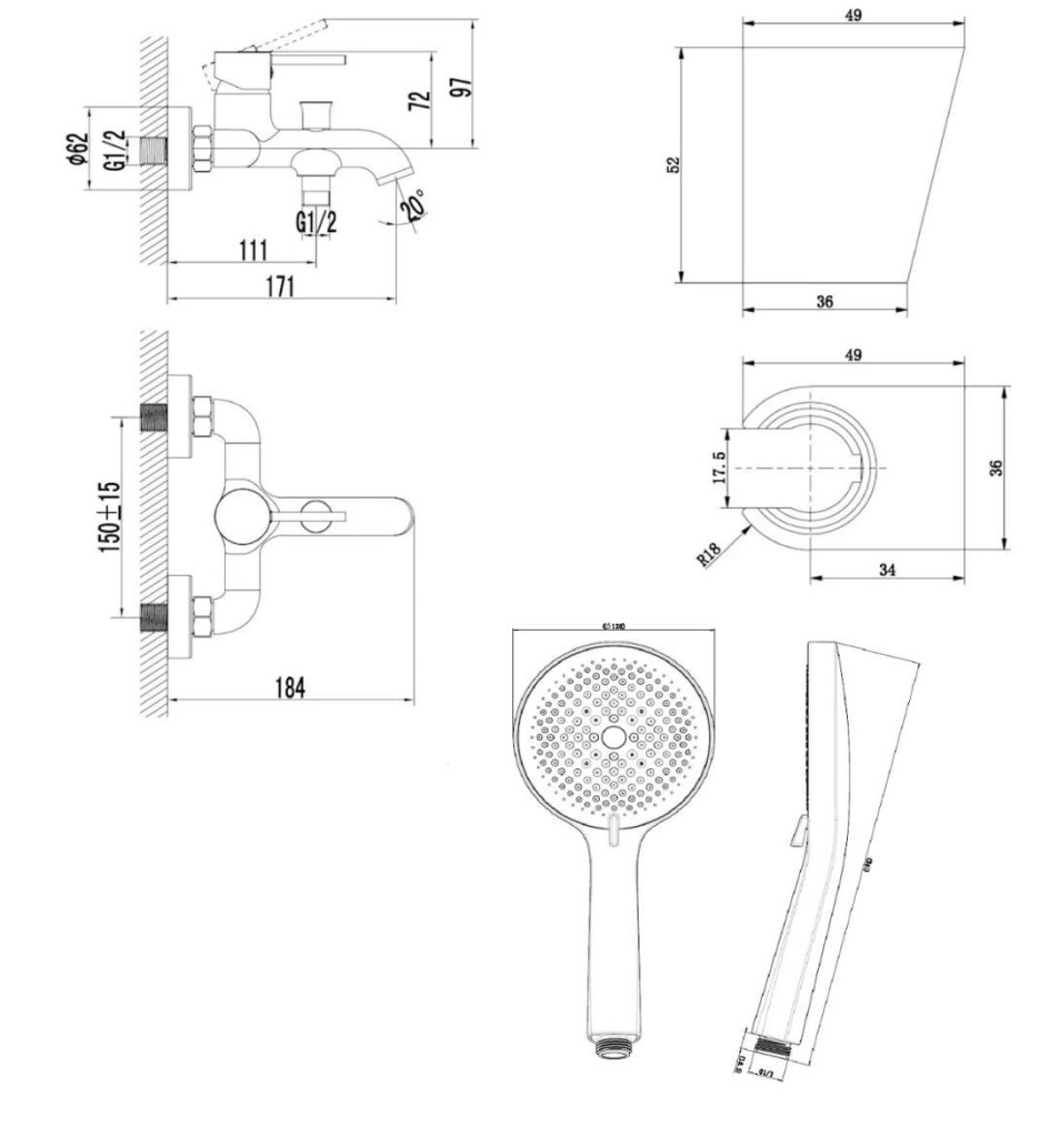 nástenný držiak sprchy