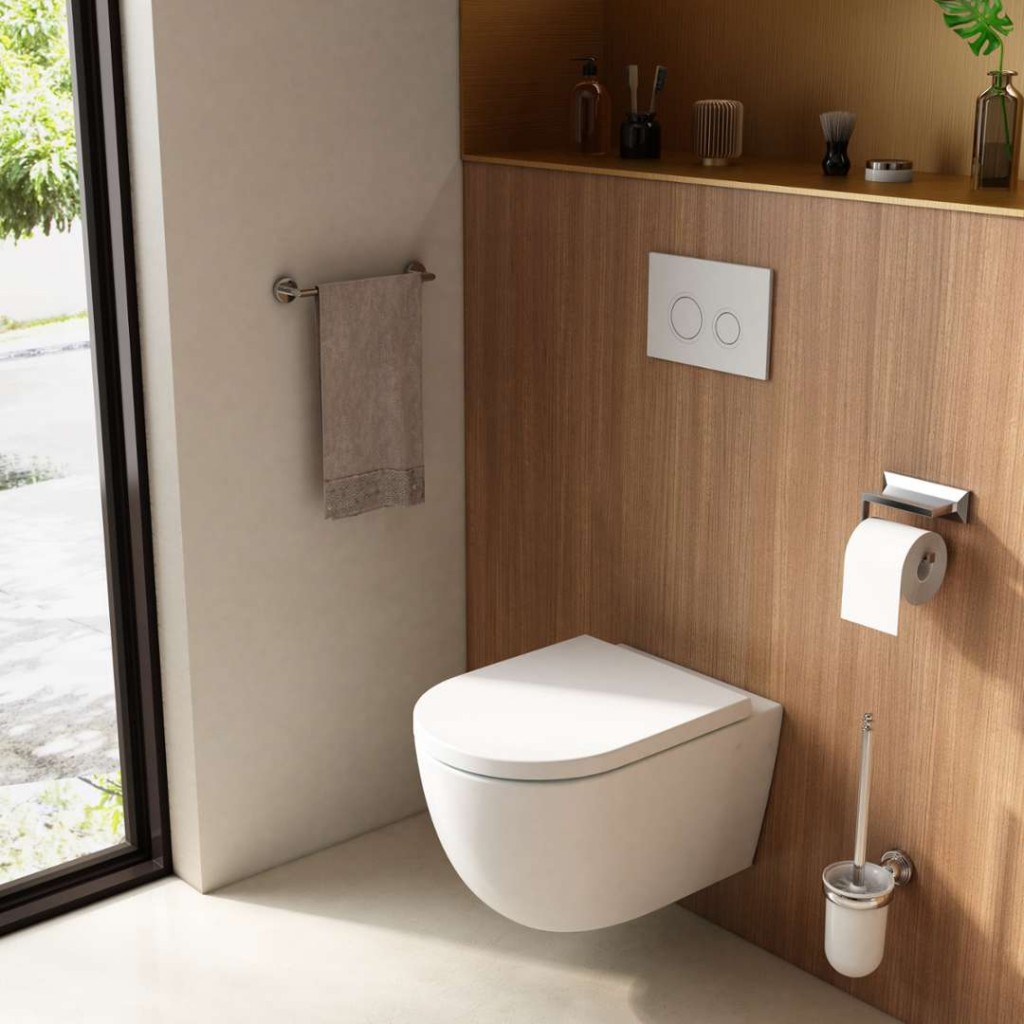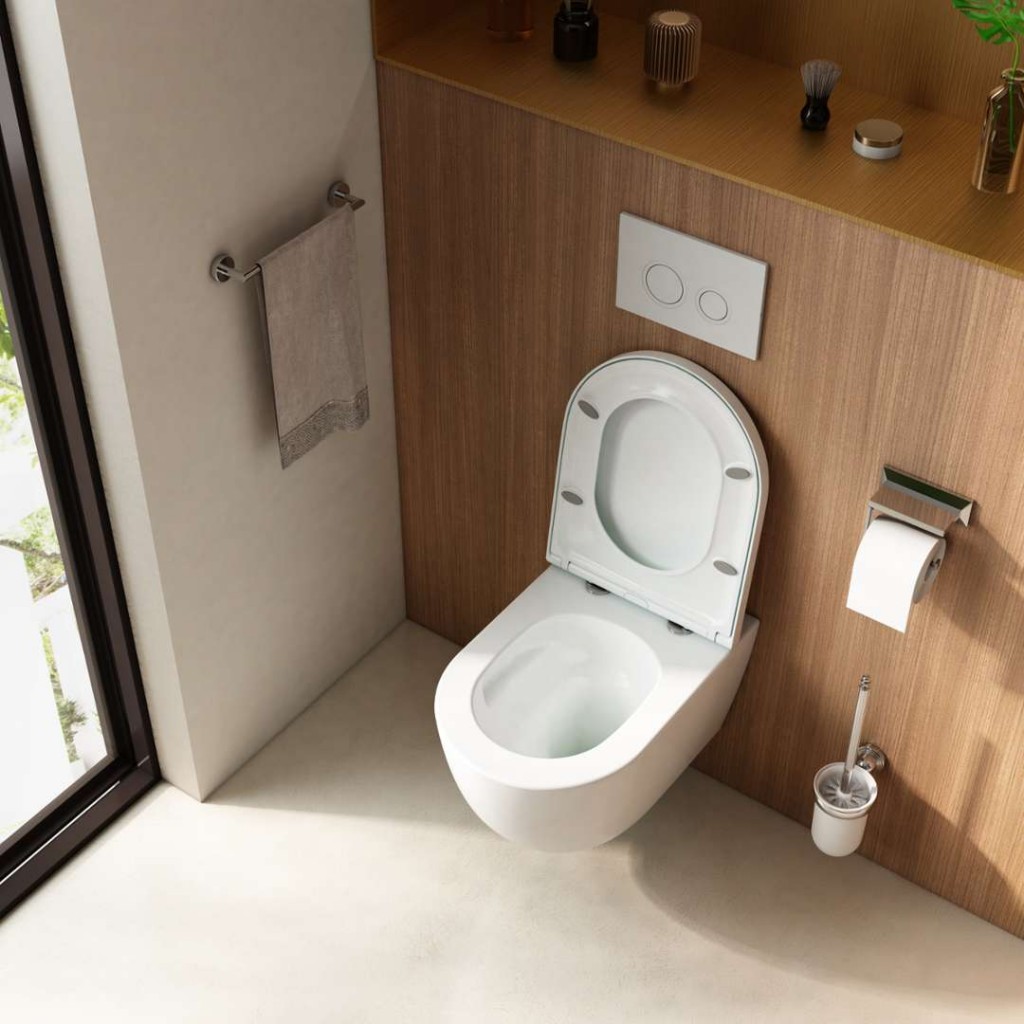 - Vortex Rimless+ inovatívne splachovanie pomocou vodného víru, ktoré zaisťuje dokonalé očistenie toalety