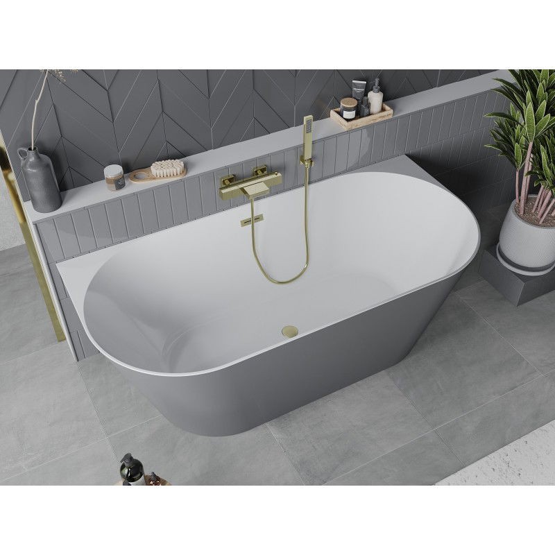 Špecifikácia produktu: Rozmery: 170 x 80 cm Výška: 58 cm Hĺbka: 45 cm Montáž: Nástenná Materiál: Sanitárny akrylát Farba: Biela / sivá Povrchová úprava: Kartáčované zlato Otvor pre prepad: Áno Otvor pre batériu: Nie Sifón a zátka click-clack súčasťou balenia