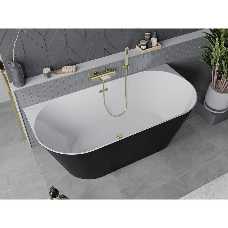 Špecifikácia produktu: Rozmery: 170 x 80 cm Výška: 58 cm Hĺbka: 45 cm Montáž: Nástenná Materiál: Sanitárny akrylát Farba: Biela/Čierna Povrchová úprava: Zlatá Otvor pre prepad: Áno Otvor pre batériu: Nie Sifón a zátka click-clack sú súčasťou balenia