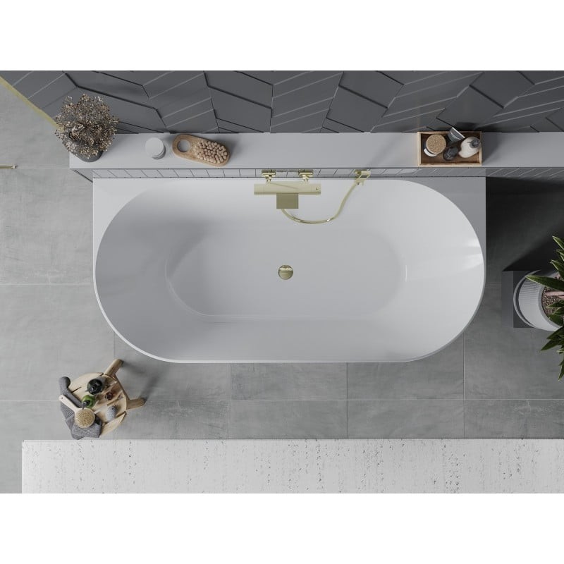 Špecifikácia produktu: Rozmery: 170 x 80 cm Výška: 58 cm Hĺbka: 45 cm Montáž: Nástenná Materiál: Sanitárny akrylát Farba: Biela / sivá Povrchová úprava: Zlatá Otvor pre prepad: Áno Otvor pre batériu: Nie Sifón a zátka click-clack sú súčasťou dodávky
