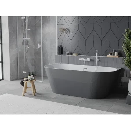 MEXEN - Oval Slim voľne stojaca vaňa nástenná 170 x 80, biela/sivá, bez krytky prepadu a zátky (52661708062-SS)