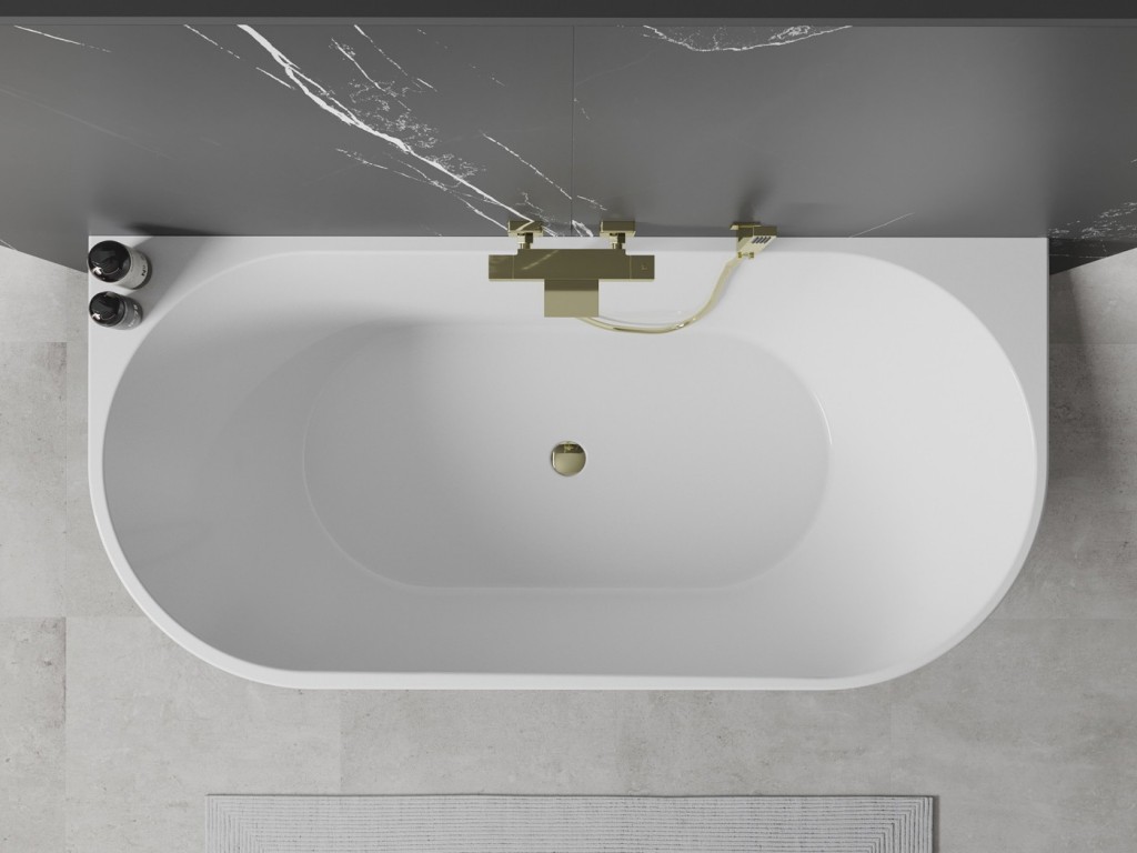 Mexen Oval je elegantná voľne stojaca vaňa, ktorá skvele zapadne do moderných interiérov. Jeho oválny tvar a lesklý povrch dodávajú kúpeľni jedinečný štýl. Vaňa má rozmery 140 x 75 cm a výšku 58 cm, čo zaisťuje komfort používania. Vyrobené zo sanitárneho akrylátu, je odolné voči zašívaniu a UV žiareniu, čo zaručuje dlhodobé používanie. Zlatý sifón a prepad navyše tvoria estetický akcent, zdôrazňujúci eleganciu produktu.
