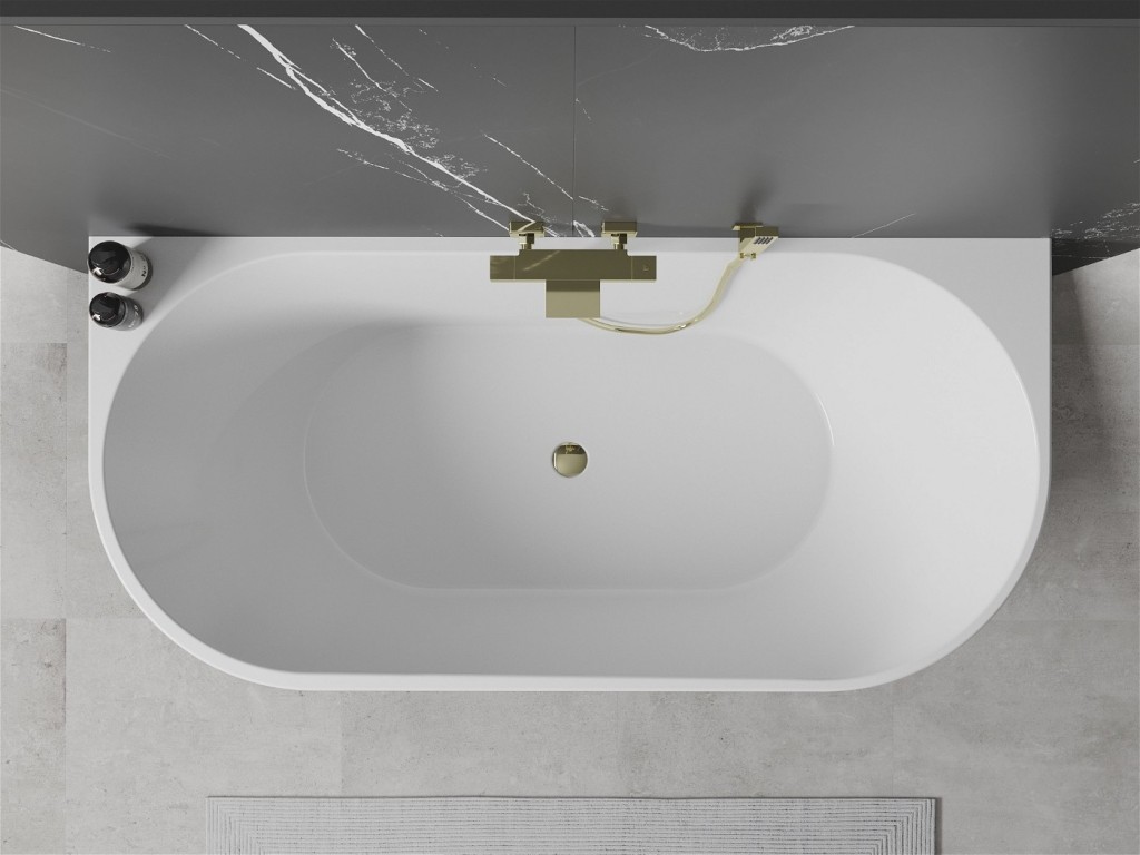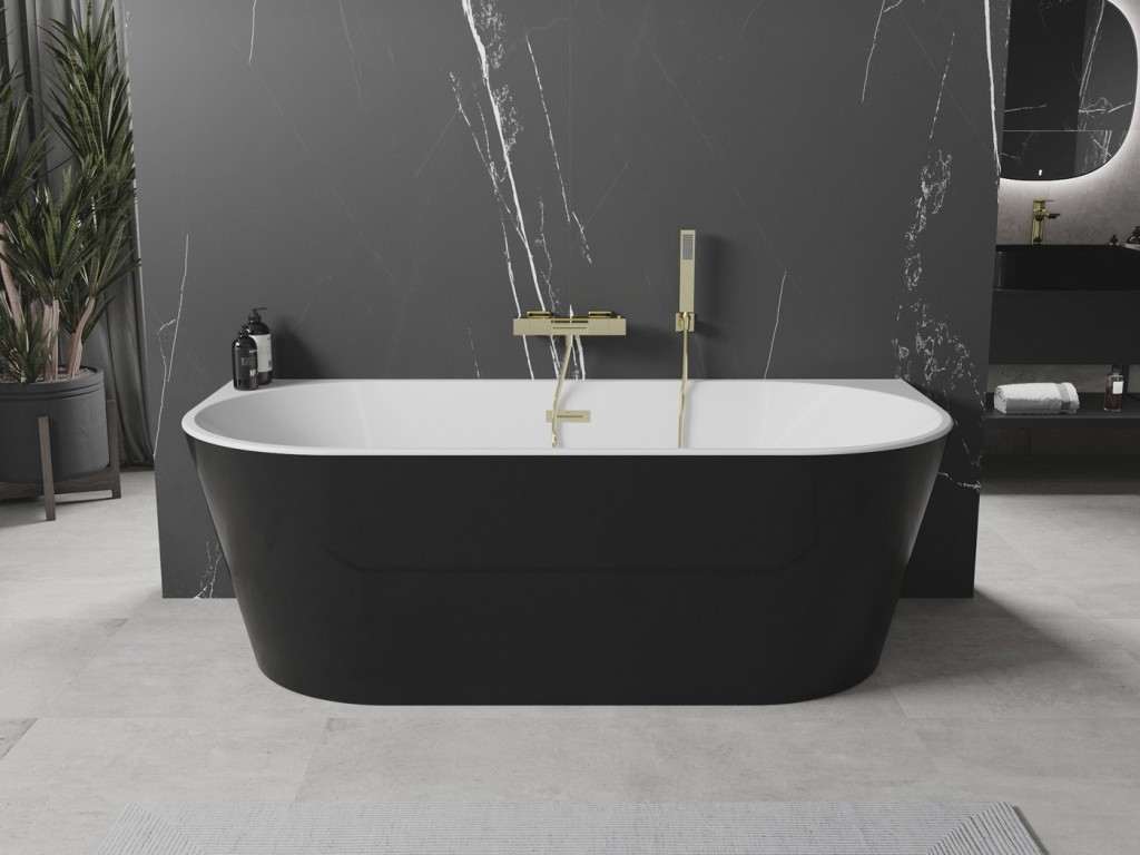 Mexen Oval je elegantná voľne stojaca nástenná vaňa s rozmermi 180 x 80 cm, ktorá skvele zapadne do moderných kúpeľní. Vyrobené zo sanitárneho akrylátu, je odolné proti matovaniu a UV žiareniu. Čiernobiele farby a zlaté prevedenie sifónu dodávajú jedinečný štýl. Vaňa má hĺbku 45 cm a výšku 58 cm, čo zaisťuje pohodlie pri kúpaní. Sada obsahuje sifón a zástrčku click-clack, ktorá uľahčuje inštaláciu a používanie.