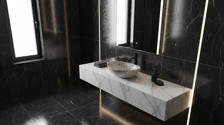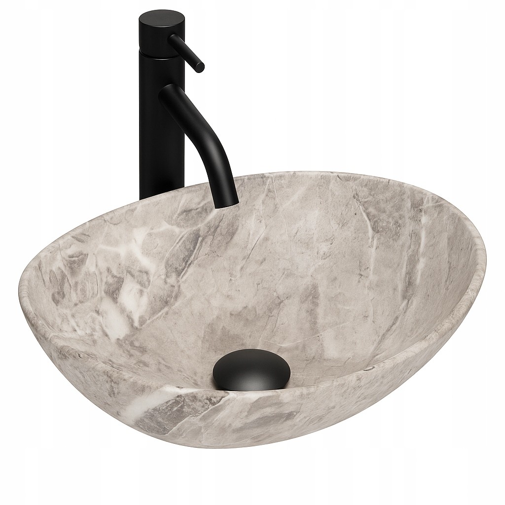 Elegantné umývadlo ATENA značky Basaro v šedej kamennej imitácii zaujme prirodzeným vzhľadom a moderným dizajnom. S rozmermi 41,5 × 34,5 × 15 cm je ideálna aj do menších kúpeľní. Hĺbka misy 11 cm ponúka pohodlné používanie každý deň.