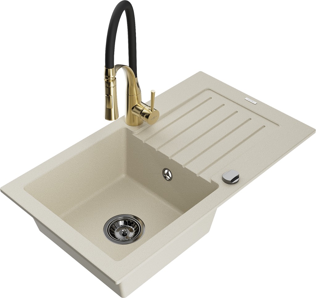 MEXEN/S - Pablo granitový drez 1 s odkvapkávačom vrátane batérie Aster, béžová (6510-69-73450-57-B)