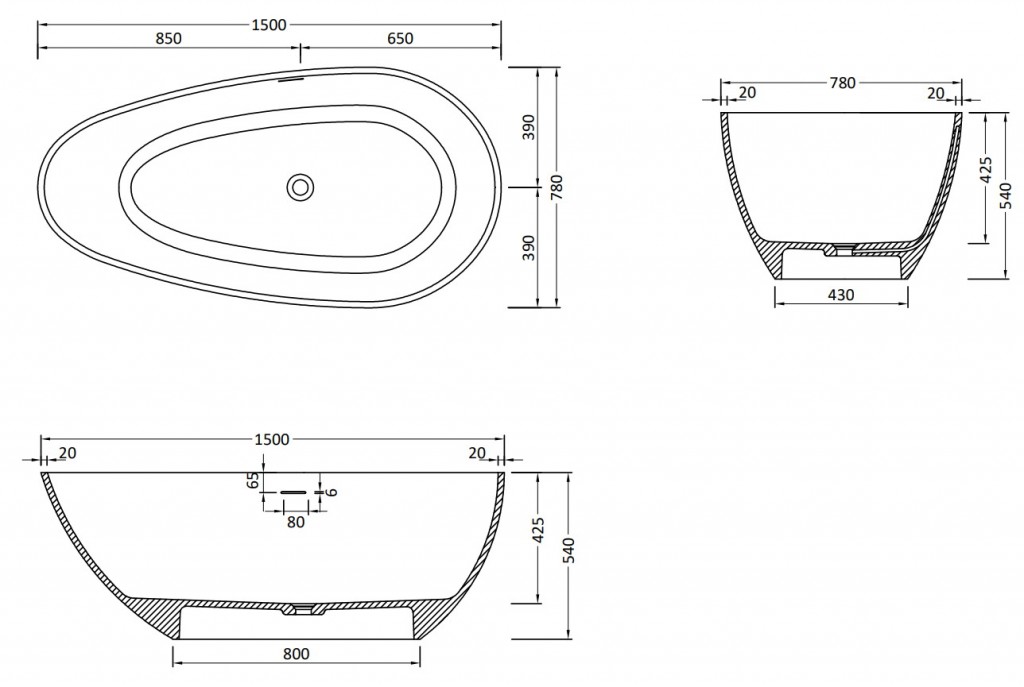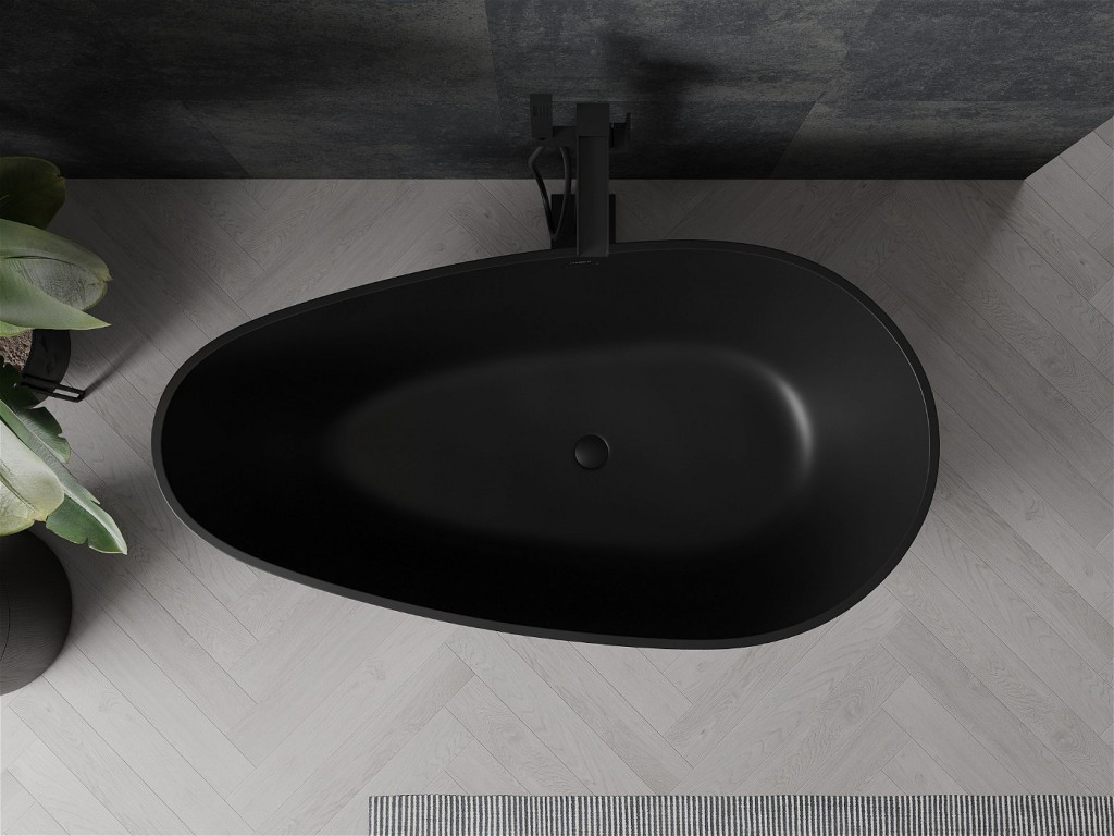 Voľne stojaca oválna vaňa série POLERMO od výrobcu MEXEN je vyrobená z kolglomerátu /liaty mramor/, je bez prepadu a odpad má umiestnený na strede vane.