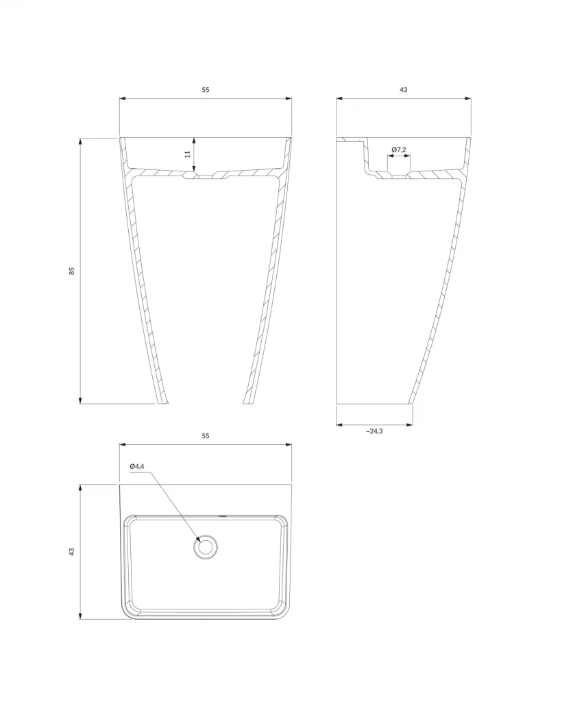 Voľne stojace umývadlo z kolekcie OMNIRES PARMA zaujme svojou geometrickou siluetou s jemnými zaobleniami. Zrezaný chrbát dokonale priľne k stene, vďaka čomu celé telo zaberie menej miesta. Umývadlo sa stane ústredným bodom kúpeľne a dodá interiéru osobitý charakter.
