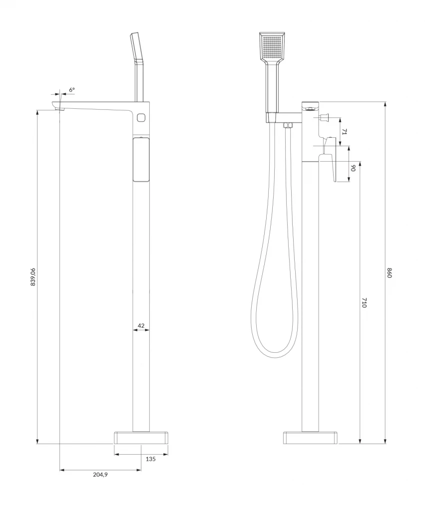 - sprchová hadica v oceľovom plášti, dĺžka: 150 cm