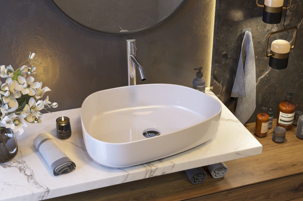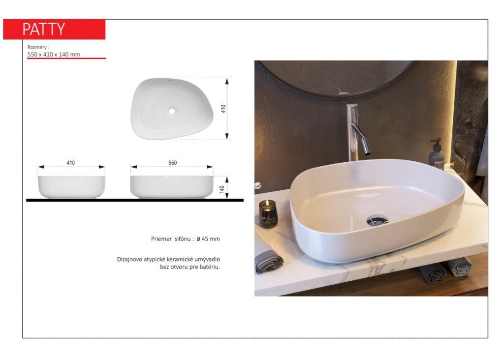 Atypické keramické umývadlo bez otvoru pre batériu, bez prepadu