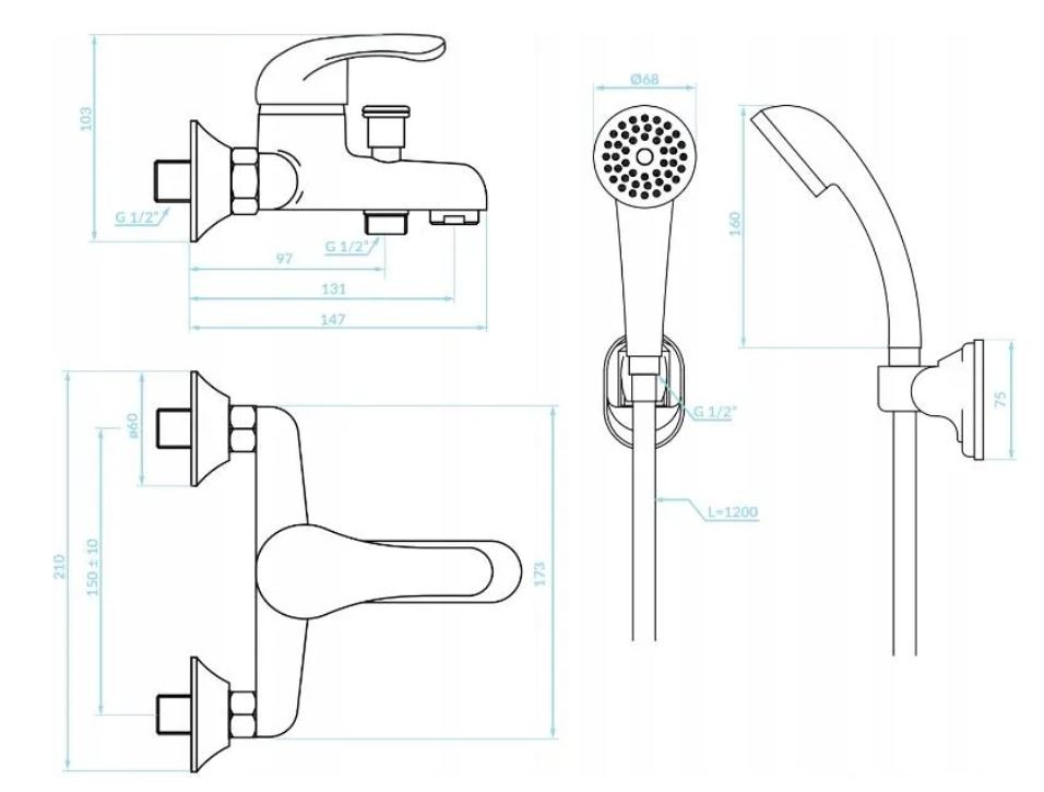 Nástenná vaňová batéria série Pedro so sprchovou sadou je elegantné a praktické riešenie pre moderné kúpeľne, ktoré spája štýlový vzhľad s maximálnym komfortom pri každodennom používaní.
