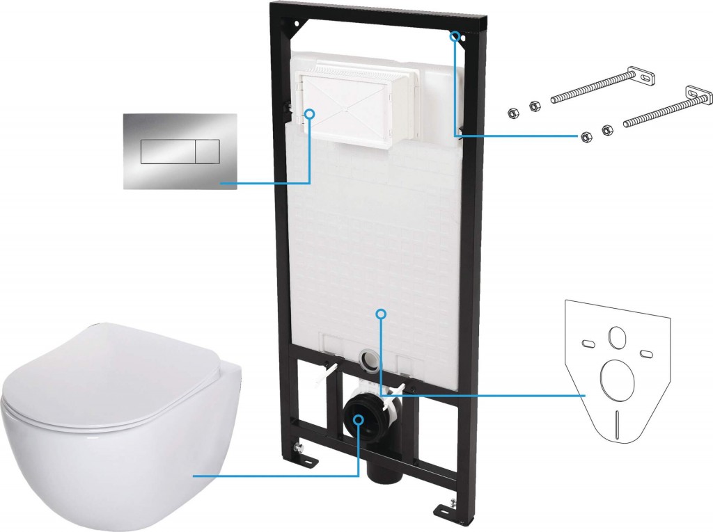Toaletný set so závesnou misou bol navrhnutý s ohľadom na vysokú estetiku miestnosti a ľahké čistenie. Odolná, kvalitná keramika nepraská a nemení farbu ani po dlhšej dobe používania, čo potvrdil výskum Deante. Univerzálna, klasická, biela farba toaletného setu dodáva miestnosti eleganciu. Vhodné pre zapustené inštalácie. Elegantné prevedenie ozdobí každú kúpeľňu. Jedná sa o kompletnú sadu 6v1, ktorá obsahuje: rám pre zapustenú montáž, toaletnú misu bez okraja, sedátko s tichým spúšťaním, elegantné splachovacie tlačidlo, podložku tlmiacu nárazy a montážne skrutky.