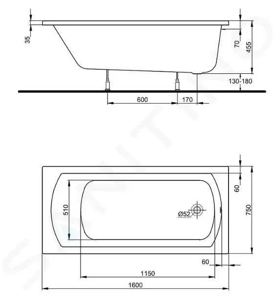 Obdĺžniková vaňa Perfect rozmery: 1600 x 750 x 435 mm materiál: sanitárny akrylát Lucite® objem: 250 l odpad: Ø 52 mm vrátane podstavných nožičiek vane SN7 nastaviteľná výška: 130-180 mm odtoková a prepadová súprava nie je súčasťou balenia obkladové… (celý popis)