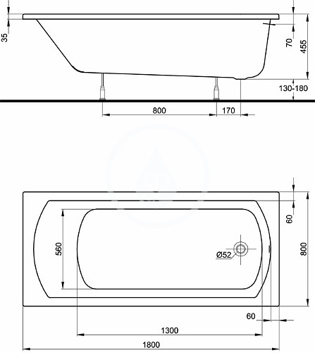 Pravouhlá vaňa vrátane nôh rozmer: 1800 x 800 x 435 mm objem vody: 290 l farba: biela materiál: akrylát Lucite® vaňová odtoková a prepadová súprava nie je súčasťou balenia ilustratívne foto(GT) (celý popis)