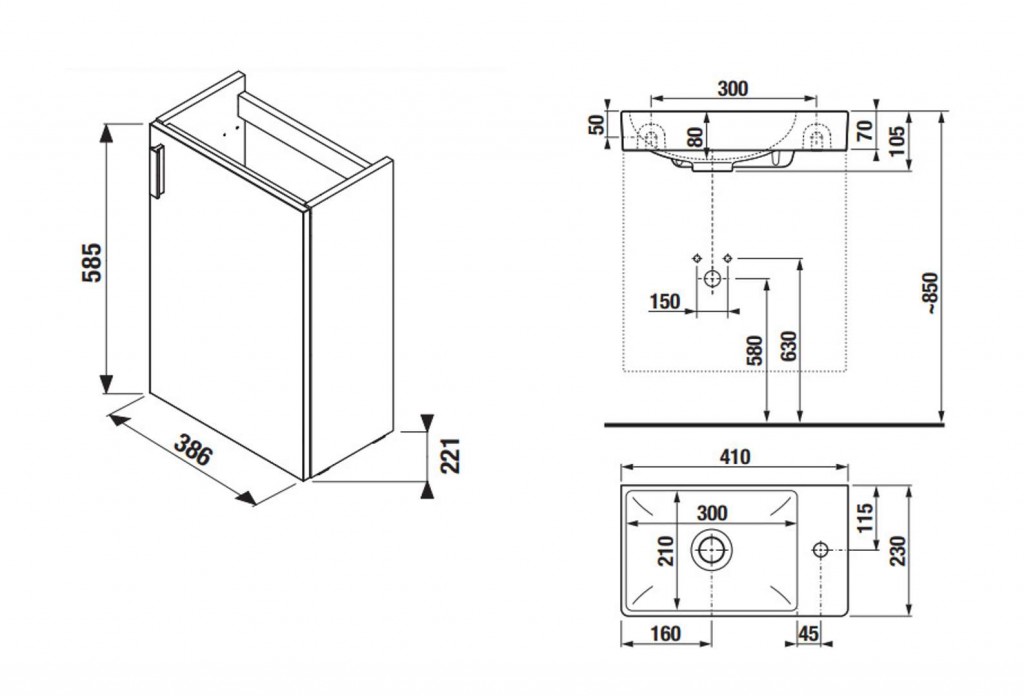 - rozmery skrinky vr. umývadlá: 410 x 655 x 230 mm (Š/V/H)