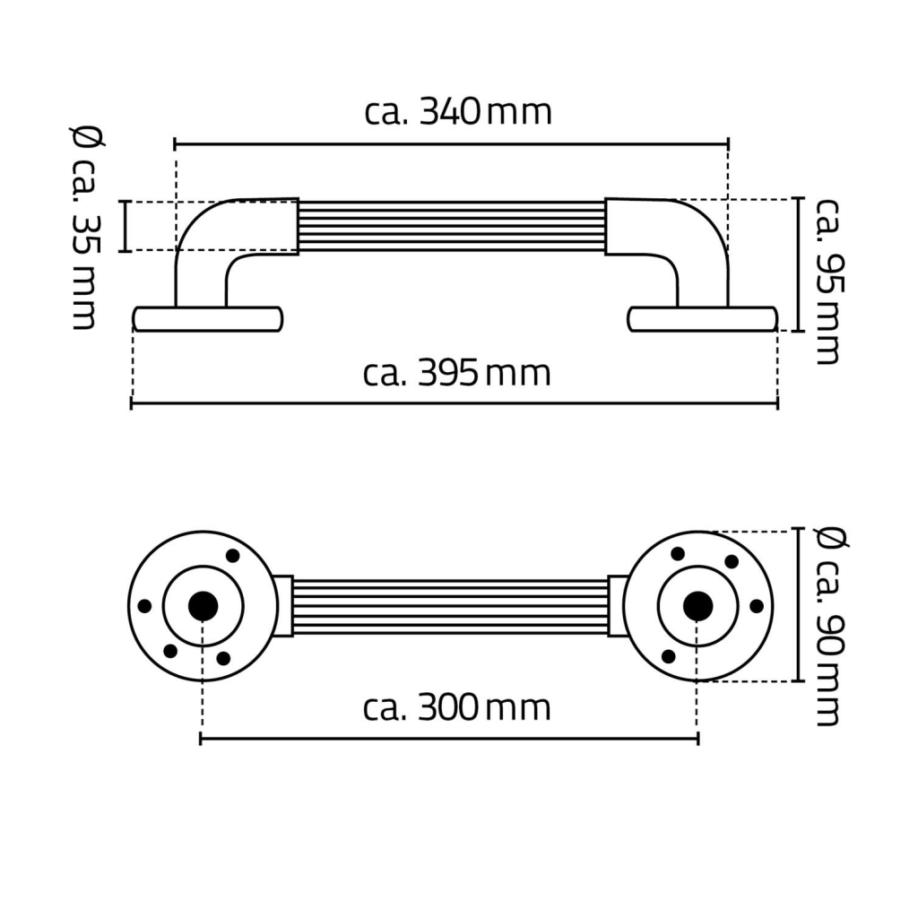 Odolné plastové madlo poskytuje bezpečnú oporu vďaka drážkam na rukoväti, ktoré poskytujú bezpečné uchopenie aj mokrými rukami.