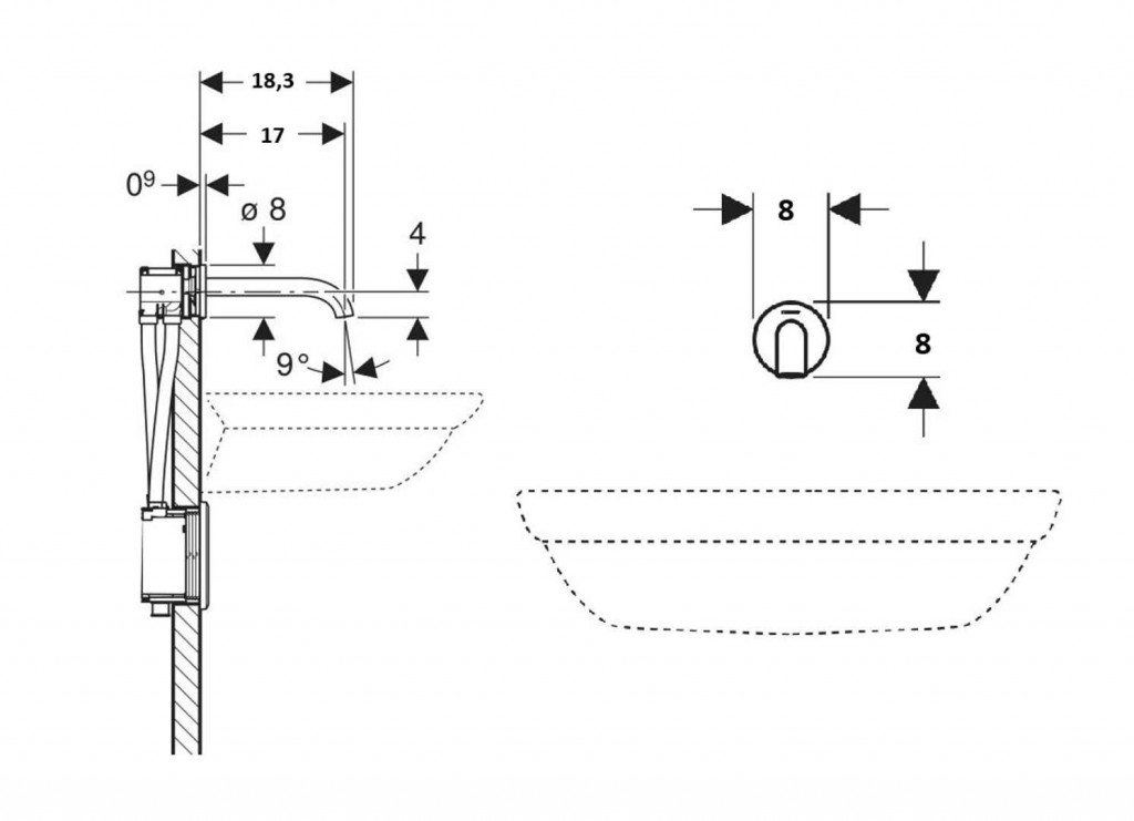 - Na montáž do inštalačných prvkov Geberit pre umývadlo, nástenná armatúra s funkčným boxom pod omietku