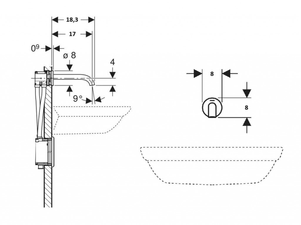 - Na montáž do inštalačných prvkov Geberit pre umývadlo, nástenná armatúra s funkčným boxom pod omietku