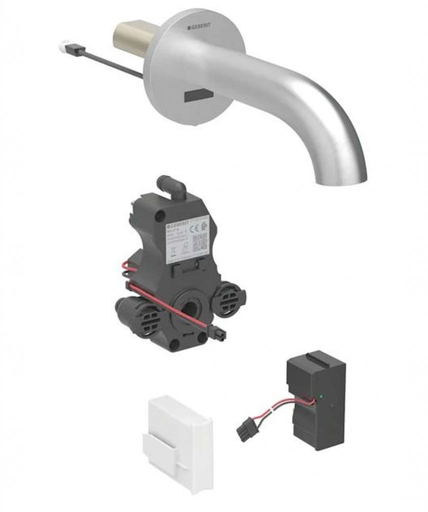 - Na montáž do inštalačných prvkov Geberit pre umývadlo, nástenná armatúra s funkčným boxom pod omietku