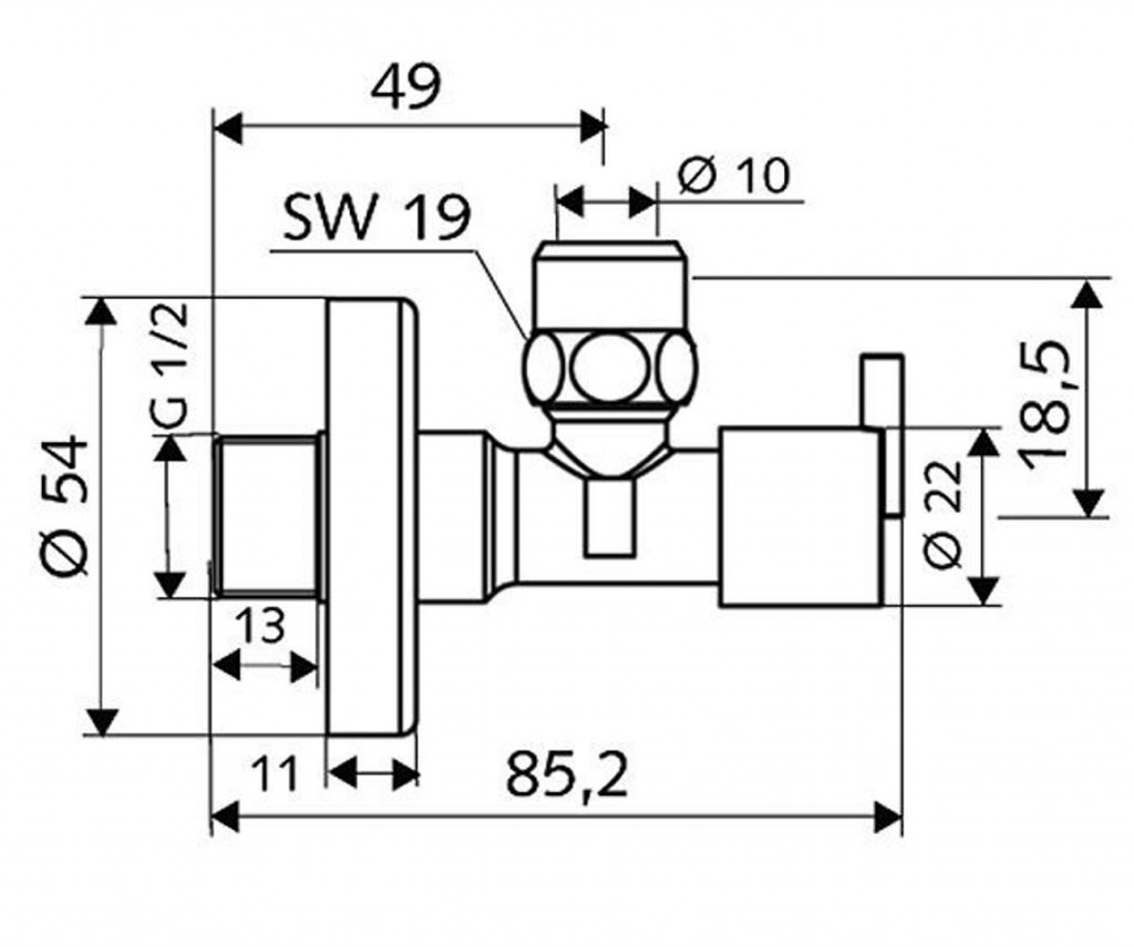 DIN rohový regulačný ventil s dizajnovou rukoväťou
