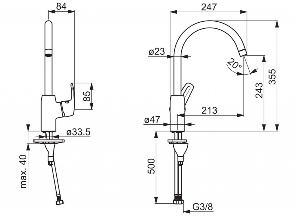 výtok: otočný 120 °, alternatívne 60 °