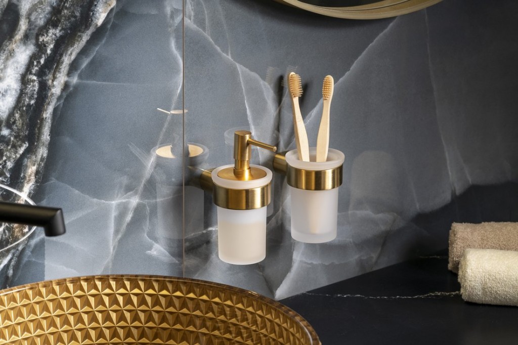 Gedy - PIRENEI dávkovač mydla, mliečne sklo, zlato mat (PI8188)