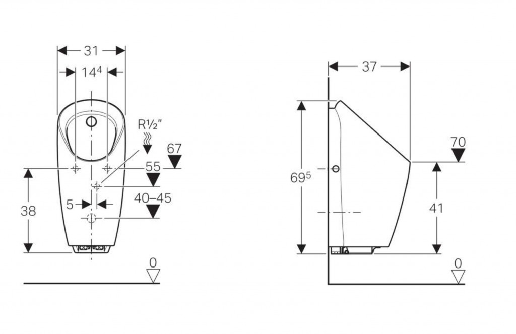 Pre montáž a demontáž ovládanie splachovania pisoárov bez sňatí keramickej misy musí byť výška hubica minimálne 55 cm nad hotovou podlahou.