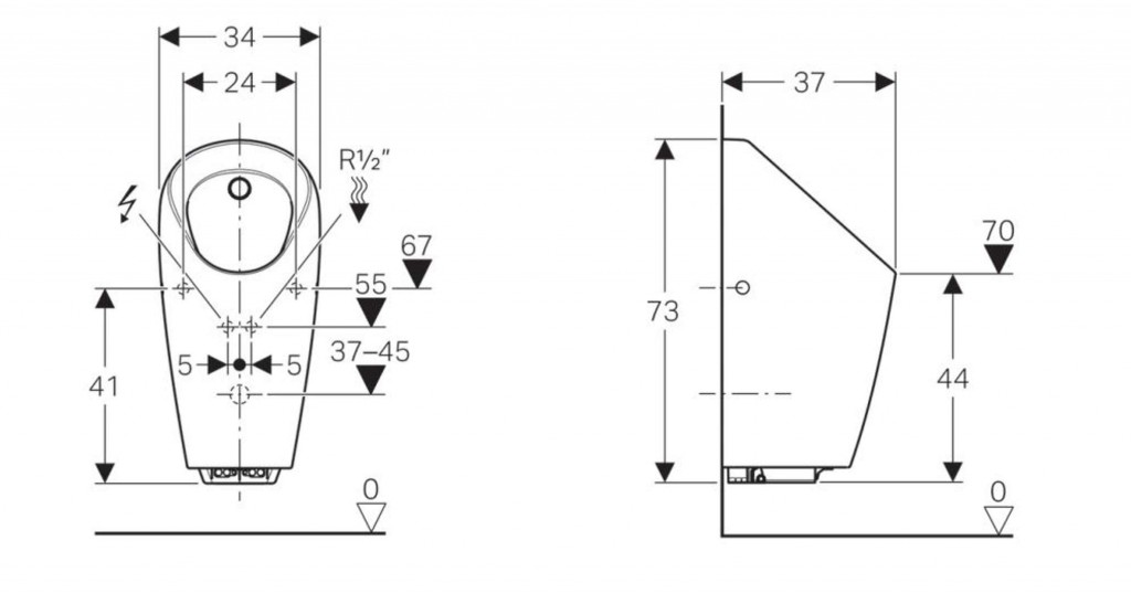 Pre montáž a demontáž ovládanie splachovania pisoárov bez sňatí keramickej misy musí byť výška hubica minimálne 58 cm nad hotovou podlahou.