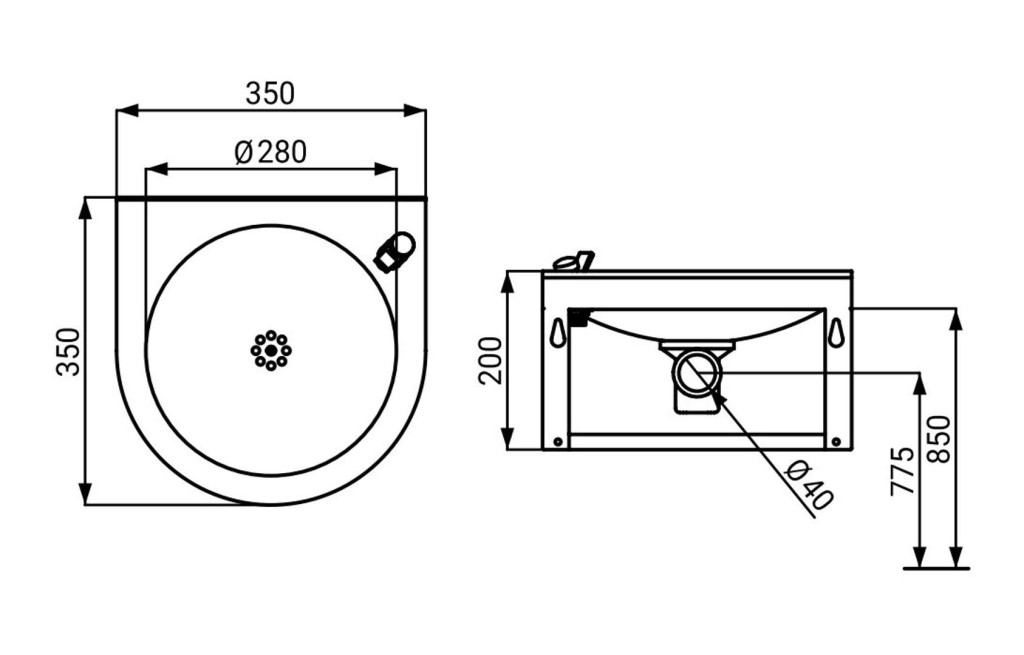 - závesná nerezová pitná fontána s tlačnou armatúrou