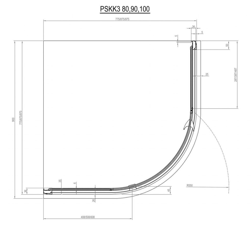 Štvrťkruhový sprchovací kút PSKK3-100, s otočnými dverami