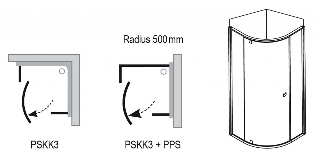 Štvrťkruhový sprchovací kút PSKK3-80, s otočnými dverami