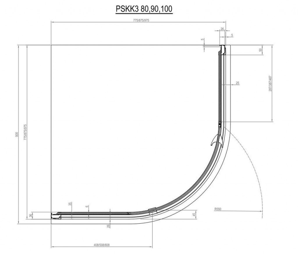 - inštalácie: 2 pevné diely a 1 ohýbaný otočný diel, montáž do obloženého rohu / niky na sprchovú vaničku alebo priamo na podlahu so zabudovaným odtokovým žľabom či podlahovou vpustí