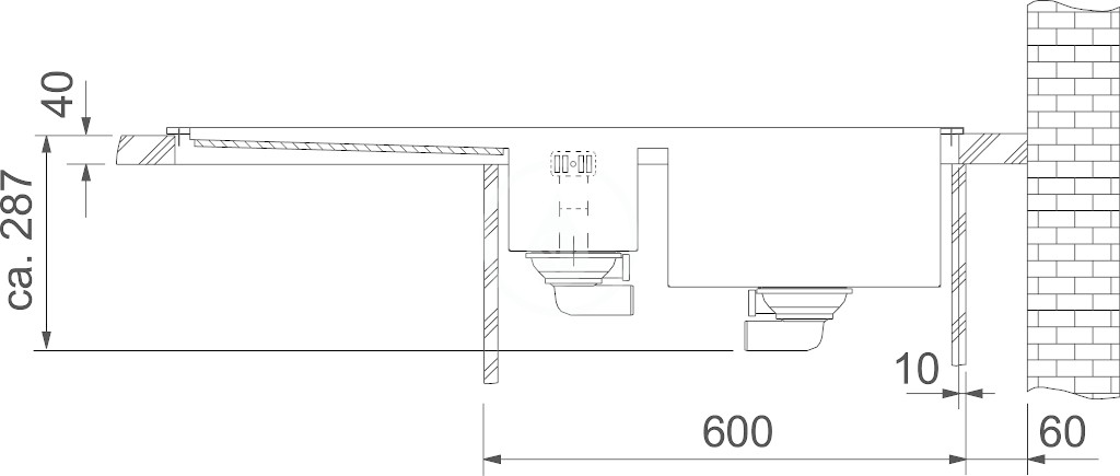 - spodná skrinka: od 600 mm
