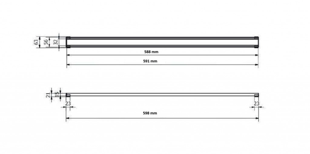 - vnútorná dĺžka dekoratívneho profilu: 588 mm