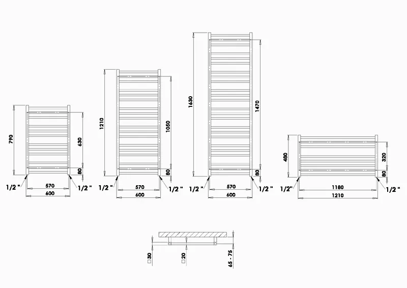 Avento - nové požiadavky na design v kúpeľniach spĺňa radiátor AVENTO, vyrobený z vertikálnych štvorcových profilov 30 x 30 mm a horizontálnych štvorcových profilov 20 x 20 mm.