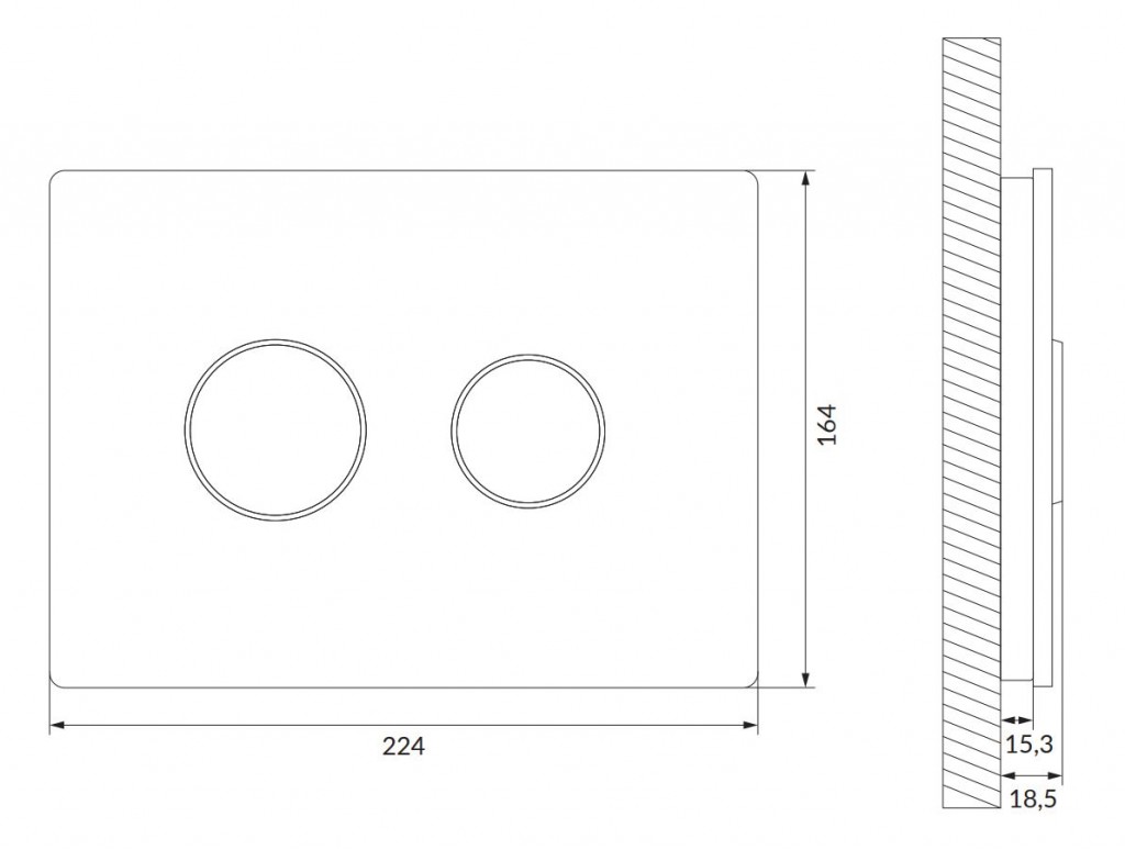 ACCENTO CIRCLE s okrúhlymi tlačidlami. Ovládanie s väčším rozsahom spláchnutia jemne vyčnieva nad povrch tlačidla a jeho okraj je zakončený skosením. Tlačidlo je určené pre skryté rámy AQUA rady 5/7/9 a SYSTEM 5/7.