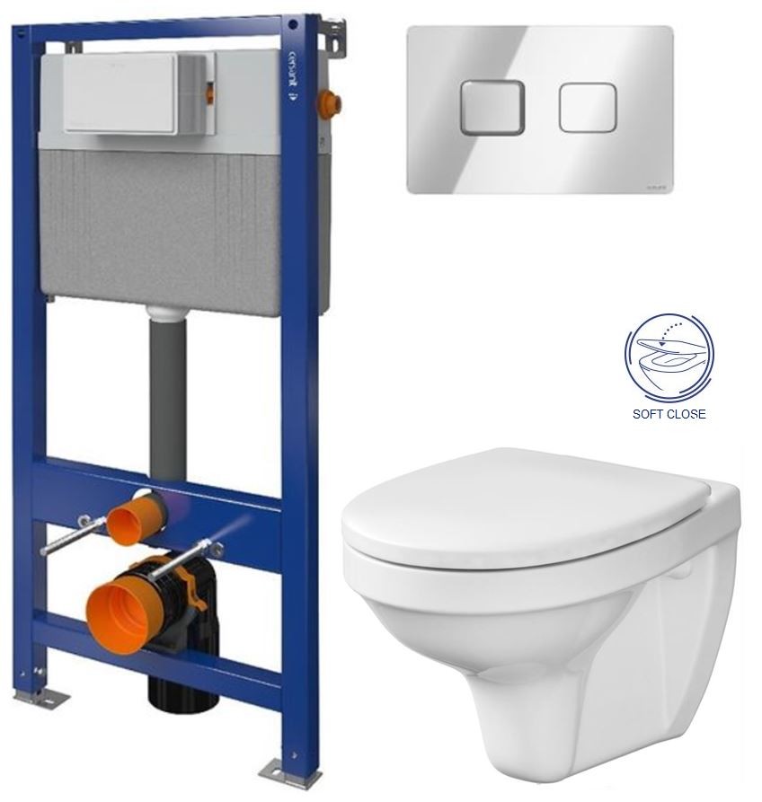 Závesná WC misa s funkciou splachovania 3/6l sa odporúča montovať s podomietkovým systémom AQUA a LINK.