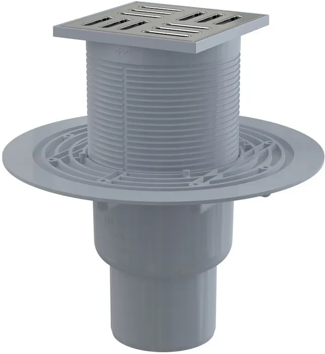 Podlahová vpusť 105 × 105/50/75 priama, mriežka nerez, vodná zápachová uzávera