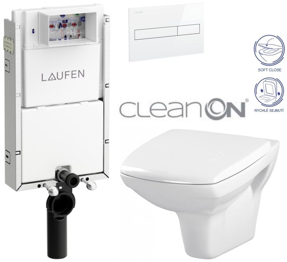 WC závesná misa CARINA NEW CleanOn elegantného vzhľadu s horizontálnym odpadom, funkciou splachovanie 2,5 / 5, 3 / 5l.