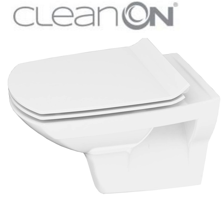 WC závesná misa CARINA NEW CleanOn elegantného vzhľadu s horizontálnym odpadom, funkciou splachovanie 2,5 / 5, 3 / 5l.