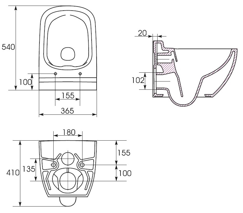 Závesná misa CASPIA NEW CLEAN ON / bez oplachového kruhu / so zadným odtokom, funkcia splachovanie 2 / 4l, 25, / 5l alebo 3 / 5l.