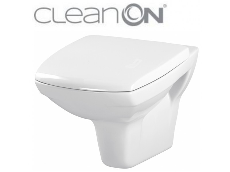 WC závesná misa CARINA NEW CleanOn elegantného vzhľadu s horizontálnym odpadom, funkciou splachovanie 2,5 / 5, 3 / 5l.