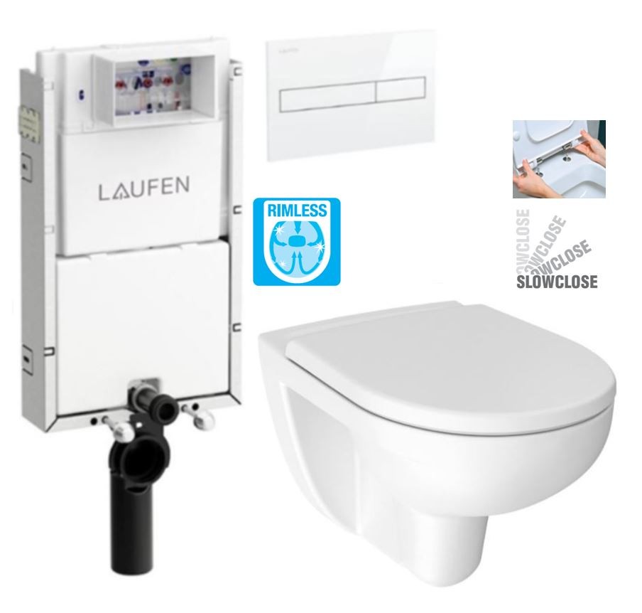 WC kombi RIMLESS / bez splachovacieho kruhu / = je moderný systém splachovania, ktorý sa charakterizuje znamenitou funkčnosťou a vysokou hygienou oproti bežným klozetům so splachovacím kruhom. U bežných klozetov môže dochádzať k zachytávanie nečistôt vo splachovacím kruhu pod okrajom misy. Súčasný systém zaisťuje dokonalý rozvod vody a jednoduché čistenie - všetok priestor vo vnútri misy je smaltovaný a jednoducho čistiteľný.