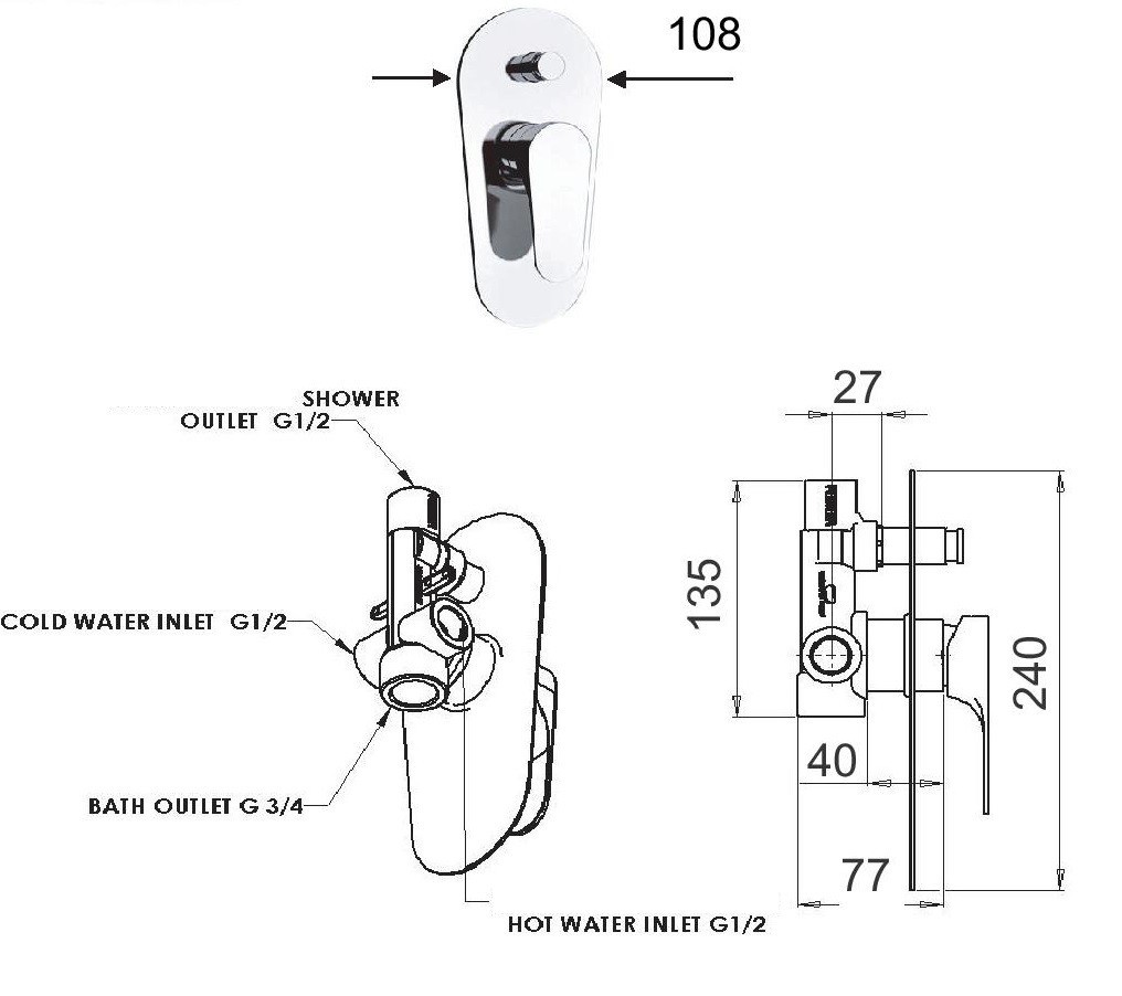- Sprchová alebo vaňová batéria podomietková bez príslušenstva, s prepínačom
