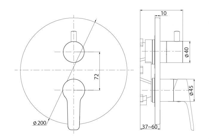 - Sprchová podomietková batéria s prepínačom