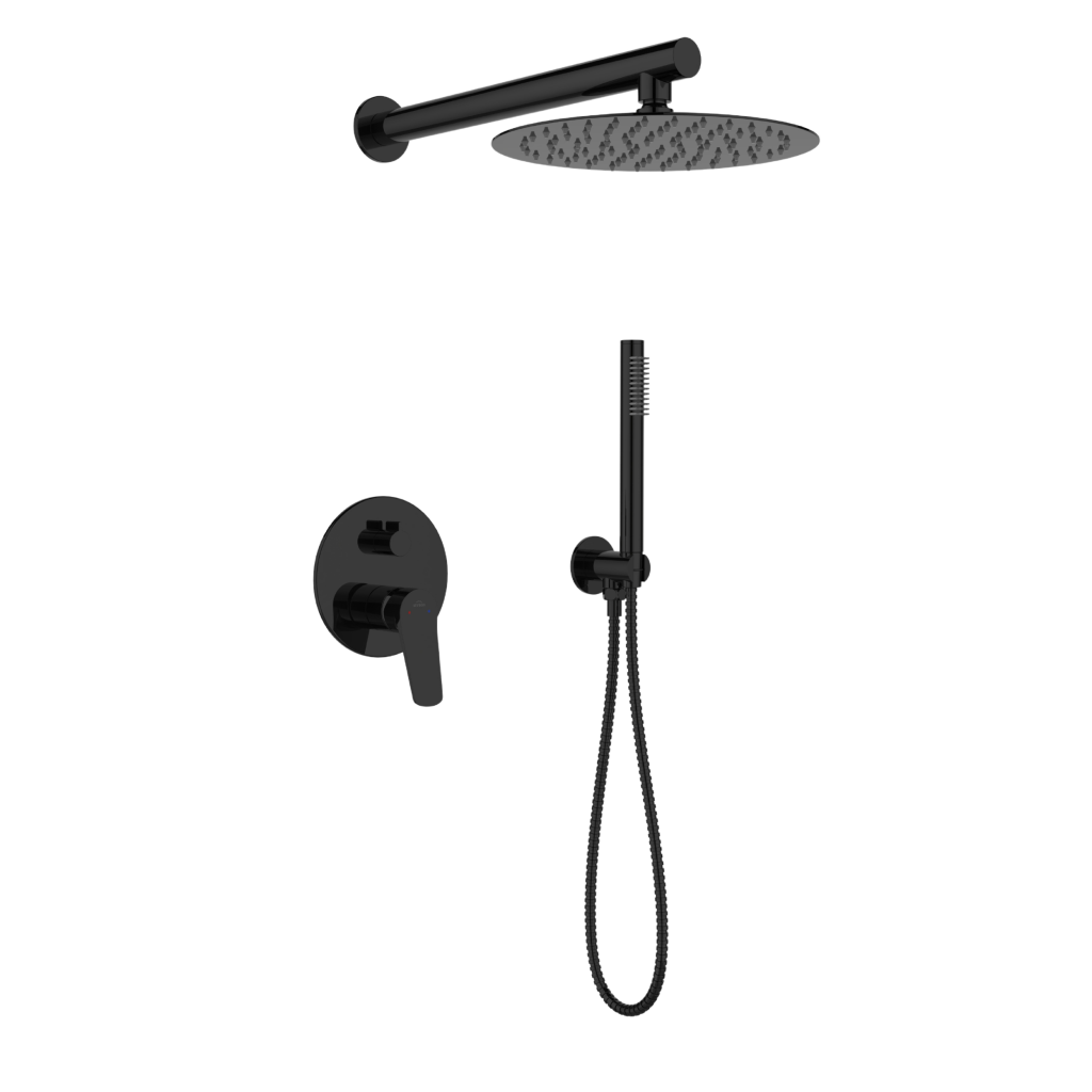 Podomietková batéria ALONIA 2F v lesklej čiernej farbe je perfektným riešením pre modernú kúpeľňu. Okrúhla sprchová hlavica s dažďovým efektom s priemerom 25 cm poskytuje luxusné sprchovanie, zatiaľ čo systém proti vodnému kameňu zaisťuje dlhotrvajúci výkon tým, že eliminuje usadzovanie vodného kameňa. Ručná sprcha a hadica s dĺžkou 150 cm robia sprchovanie pohodlné a praktické. Montážna krabica uľahčuje rýchlu a bezproblémovú inštaláciu, čo je zásadné pre tých, ktorí si vo svojej kúpeľni cenia efektivitu a estetiku. Táto sada kombinuje štýl s funkčnosťou, takže každodenné používanie kúpeľne je čírym potešením. ALONIA je vynikajúcou voľbou pre tých, ktorí hľadajú elegantné a moderné kúpeľňové vybavenie.