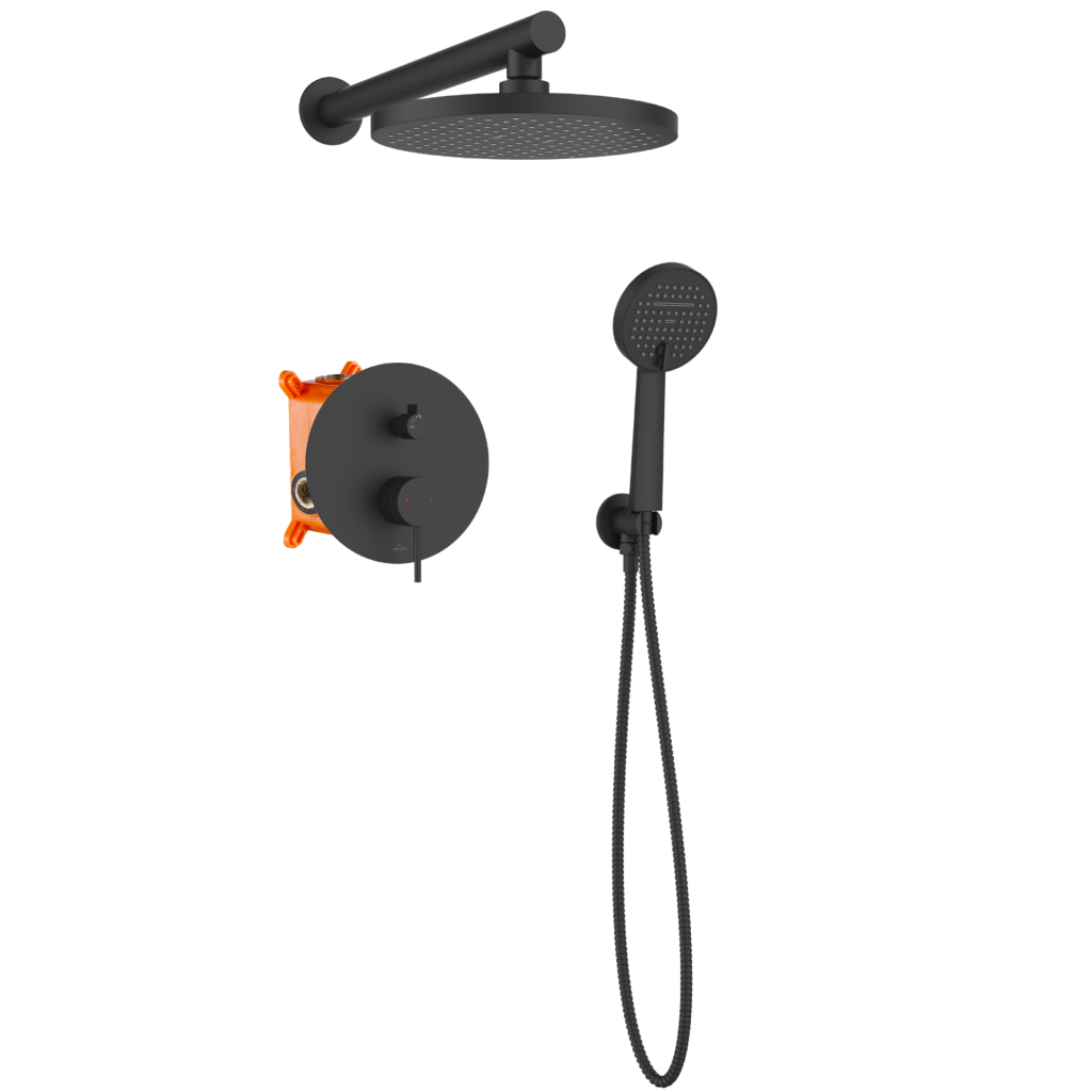 Objavte jedinečnú podomietkovú sprchovú sadu Kalitea v módnej, elegantnej čiernej farbe, ktorá premení vašu kúpeľňu na priestor prekypujúci luxusom a moderným štýlom. Táto sada je dokonalou kombináciou estetiky a funkčnosti, vytvorenou pre tých, ktorí si cenia najvyššiu kvalitu a dizajnové riešenia. Kľúčové vlastnosti sady Kalitea: Okrúhla sprchová hlavica: S pôsobivým priemerom 22,5 cm je vybavená pokročilým prevzdušňovacím systémom, ktorý zaisťuje rovnomerný prúd aj pri kolísaní tlaku. Systém proti vodnému kameňu navyše chráni pred usadzovaním vodného kameňa a zaisťuje tak dlhodobú spoľahlivosť. Sprchové rameno: Robustné a štýlové, s dĺžkou 40 cm, dokonale zladené s dažďovou sprchovou hlavicou a umožňuje pohodlné sprchovanie. Podomietková sprchová batéria: Dvojité funkcie, umožňuje pohodlné prepínanie medzi dažďovou sprchovou hlavicou a ručnou sprchou a poskytuje úplnú kontrolu nad komfortom sprchovania. Sprchová hlavica: S priemerom 10,5 cm ponúka dva typy prúdu - normálny a kaskádový. Vybavená systémom proti vodnému kameňu a prevzdušňovacím systémom vody zaručuje príjemný a efektívny zážitok zo sprchovania. Sprchová hadica: Vyrobená z nerezovej ocele, dvojito opletená a dlhá 150 cm, zaisťuje odolnosť a spoľahlivosť pri každodennom používaní. Uhlová spojka s držiakom na ručnú sprchu: Okrúhla a elegantná, dokonale dopĺňa sadu a poskytuje estetické a funkčné uloženie ručnej sprchy. Montážny box je súčasťou dodávky: Zjednodušuje a urýchľuje inštaláciu a zaisťuje, že všetko perfektne padne a je bezpečne namontované. Vyberte si sprchovú sadu Kalitea a užite si každodenné sprchovanie v jedinečnom štýle. Je to perfektné riešenie pre tých, ktorí chcú spojiť modernitu so spoľahlivosťou a vytvoriť si kúpeľňu svojich snov.