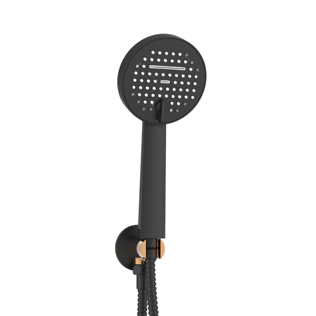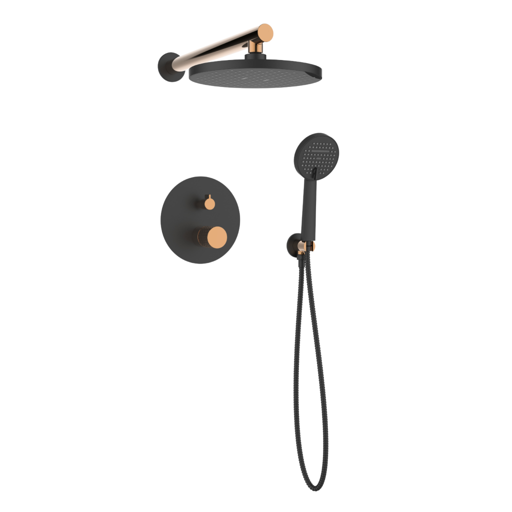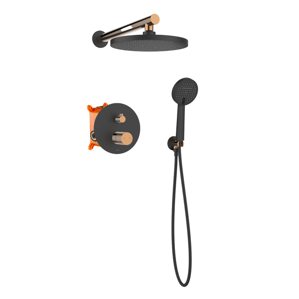 Objavte jedinečnú sprchovú sadu pod omietku radu Moonlight, ktorá kombinuje modernú funkčnosť s luxusným dizajnom. Táto sada sa perfektne hodí na vytvorenie elegantnej kúpeľne a vyznačuje sa kombináciou tmavo čiernej farby so sofistikovanými ružovo-zlatými akcentmi, ktoré jej dodávajú jedinečný a štýlový charakter. Kľúčové vlastnosti: Horná sprchová hlavica: Okrúhla, s priemerom 22,5 cm, vybavená pokročilým prevzdušňovacím systémom. Poskytuje rovnomerný prúd bez ohľadu na kolísanie tlaku, zatiaľ čo systém proti vodnému kameňu chráni pred usadzovaním vodného kameňa. Sprchové rameno: Elegantné a robustné, dlhé 40 cm, dokonale dopĺňa zvyšok sady. Podomietková sprchová batéria: Dvojité funkcie, umožňuje ľahké prepínanie medzi dažďovou sprchovou hlavicou a ručnou sprchou. Ručná sprcha: Dvojité funkcie (normálny prúd, kaskáda), priemer 10,5 cm, s systémom proti vodnému kameňu a prevzdušňovacím systémom, vďaka čomu je ľahko čistiteľná a ekologická. Sprchová hadica: Vyrobená z dvojito opletenej nerezovej ocele, dlhá 150 cm, zaisťuje odolnosť a spoľahlivosť. Uhlová spojka s držiakom ručnej sprchy: Okrúhla, funkčná a esteticky príjemná, dokonale dopĺňa celú sadu. Montážna krabica: Súčasťou balenia je pre jednoduchú a pohodlnú inštaláciu. Sprchová sada Moonlight nie je len technologicky vyspelým riešením, ale aj estetickým umeleckým dielom, ktoré podčiarkne jedinečný charakter vašej kúpeľne. Investujte do kvality, štýlu a funkčnosti, ktoré vám vydržia po mnoho rokov.