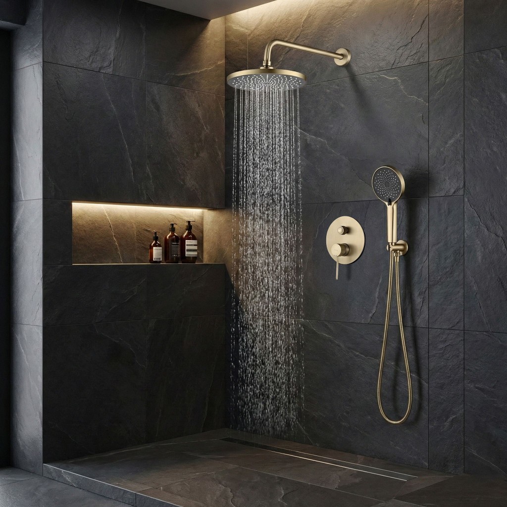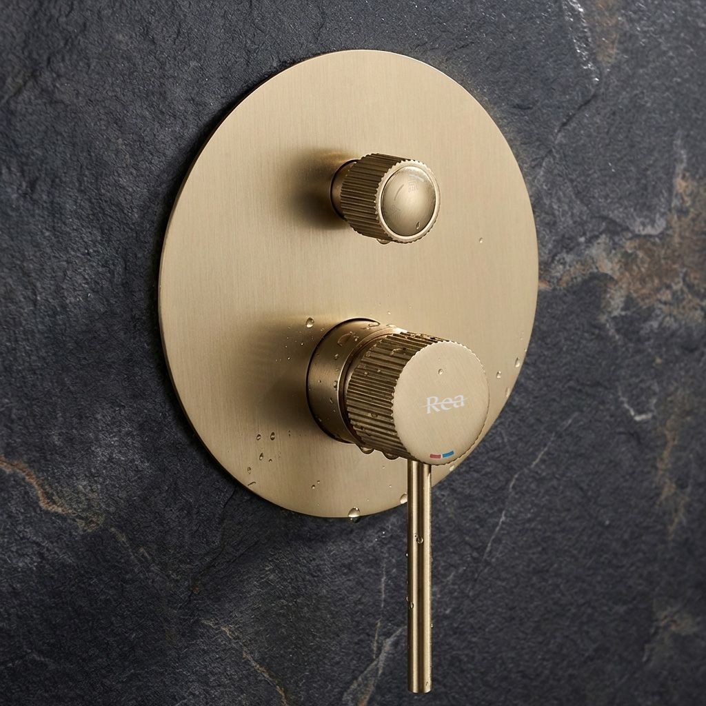 Podomietková sprchová sada Rea Lungo Stripe vo farbe brúseného zlata je moderné riešenie navrhnuté pre užívateľov, ktorí očakávajú spoľahlivosť a elegantný vzhľad. Teplý odtieň zlata v kombinácii s jemným brúsením a výrazným ryhovaním detailov dodáva kúpeľni prestížny a luxusný charakter. Dekoratívne ryhovanie Stripe - charakteristické drážky na ovládačoch batérie sú štýlovým detailom, ktorý priťahuje pozornosť a zaisťuje pevný úchop pri ovládaní prúdu vody mokrou rukou. Moderný podomietkový systém. Inovatívna kazeta (Box) uľahčuje montáž a zaisťuje pohodlný servisný prístup v budúcnosti bez nutnosti kosenia obkladov. Povrch vo farbe brúseného zlata – odolný matný povrch účinne maskuje odtlačky prstov a dodáva interiéru eleganciu a štýl. Perfektne ladí s ďalšími prvkami série Lungo. Hlavná sprcha so širokým prúdom – plochá okrúhla hlavica na nástennom ramene zaisťuje rovnomerný a relaxačný prúd vody. Súčasťou sady je tiež praktická ručná sprcha s flexibilnou hadicou. Odolné materiály - sada je vyrobená z vysoko kvalitnej mosadze a odolných materiálov, čo zaručuje plnú odolnosť voči vlhkosti a korózii a dlhú životnosť. Systém Anti-Calc - silikónové trysky v sprche a ručnej hlavici zabraňujú usadzovaniu vodného kamene. Lungo Stripe so systémom Box investujete do šikovného riešenia spájajúceho špičkovú estetiku, bezpečnosť a komfort. Minimalistický tvar a ryhované detaily dokonale doplnia každú štýlovú kúpeľňovú zónu.