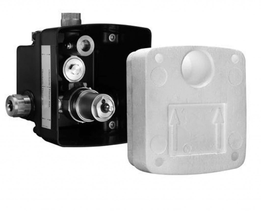 Podomietková armatúra pre kombináciu so sprchovou armatúrou, predmontovaná armatúra zabudovaná v podomietkovom boxe z umelej hmoty s utesnenými otvormi